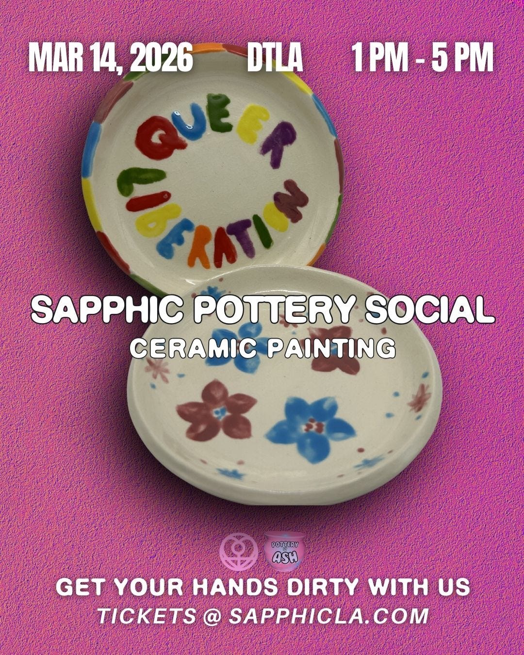 This is our last Sapphic Pottery Social before we take a Spring Break until mid-April, don’t miss out!