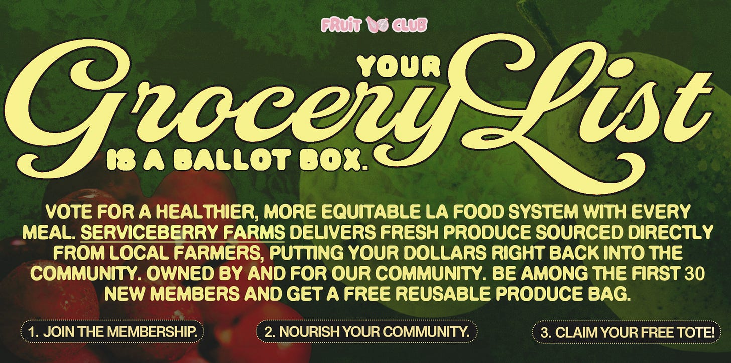 To celebrate the launch, we’re also incentivizing the first 30 member signups with a free and very stylish reusable Sapphic LA x Fruit Club tote bag!